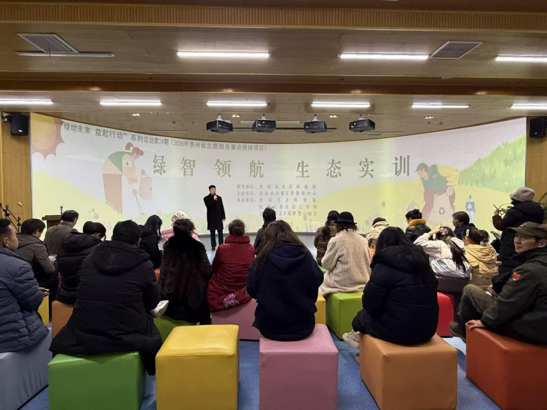 垃圾分类只是起点,生态守护才是重头戏!1月23日下午,贵阳生态科普馆携手贵阳市花溪区圆梦爱心协会,开启一场热闹又有料的“绿智领航,生态实训”主题活动。30多位来自各个社区的工作人员、社区志愿者,还有活力满满的大学生志愿者齐聚一堂,用轻松互动解锁生态科普新知识。